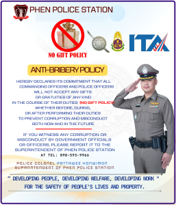 - ประกาศสำนักงานยุทธศาสตร์ตำรวจเรื่องเจตนารมณ์ที่จะไม่รับของขวัญหรือของกำนัลทุกชนิดจากการปฏิบัติหน้าที่