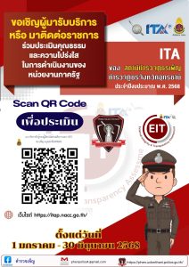 ขอเชิญผู้มารับบริการหรือมาติดต่อราชการ 9 มีนาคม 2568 โดย adminphen / ข่าวประชาสัมพันธ์,ข่าวฝากประชาสัมพันธ์ ข้อมูลผลการดำเนินงานของหน่วยเรื่องการประเมิน ITA ปีงบประมาณ 2568 สถานีตำรวจภูธรเพ็ญ ขับเคลื่อนการประเมินคุณธรรมและความโปร่งใสในการดำเนินงานของหน่วยงานภาครัฐ (Integrity and Transparency Assessment: ITA)ของสถานีตำรวจ ประจำปีงบประมาณ พ.ศ. ๒๕๖๘ ข้อมูลการดำเนินงานของสถานีตำรวจประจำปีงบประมาณ พ.ศ. 2568