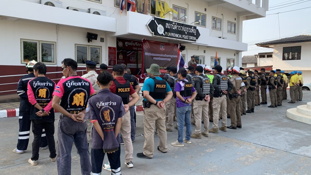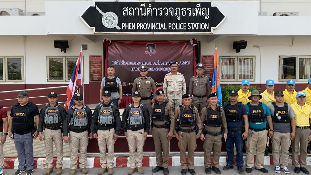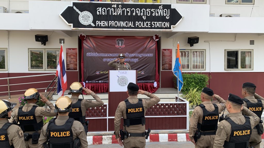 ปล่อยแถวระดมกวาดล้างก่อนเทศกาลฯ 10 เมษายน 2568 โดย adminphen / ข่าวประชาสัมพันธ์,ข่าวฝากประชาสัมพันธ์ วันที่ 10 เมษายน 3568 พ.ต.อ.ปฐวี ก้อนวิมล ผกก.สภ.เพ็ญ มอบหมายให้ พ.ต.ท.ภูภูมิ มีมูล รองผกก.ป.ฯ ปรก.สภ.เพ็ญ ปล่อยแถวระดมกวาดล้างอาชญากรรมยาเสพติดและอบายมุข ในเขตพื้นที่ โดยมี ข้าราชการตำรวจ เจ้าหน้าที่ฝ่ายปกครอง ,เจ้าหน้าที่กู้ภัย อ.เพ็ญ, อาสาสมัครตำรวจบ้าน (อส.ตร.สภ.เพ็ญ) ร่วมพิธีฯ ณ ลานที่ทำการสถานีตำรวจภูธรเพ็ญ