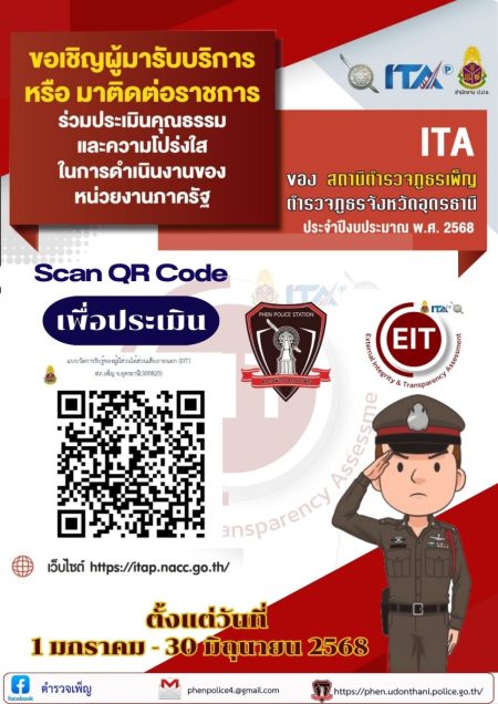 ข้อมูลผลการดำเนินงานของหน่วยเรื่องการประเมิน ITA ปีงบประมาณ 2568 สถานีตำรวจภูธรเพ็ญ ขับเคลื่อนการประ
