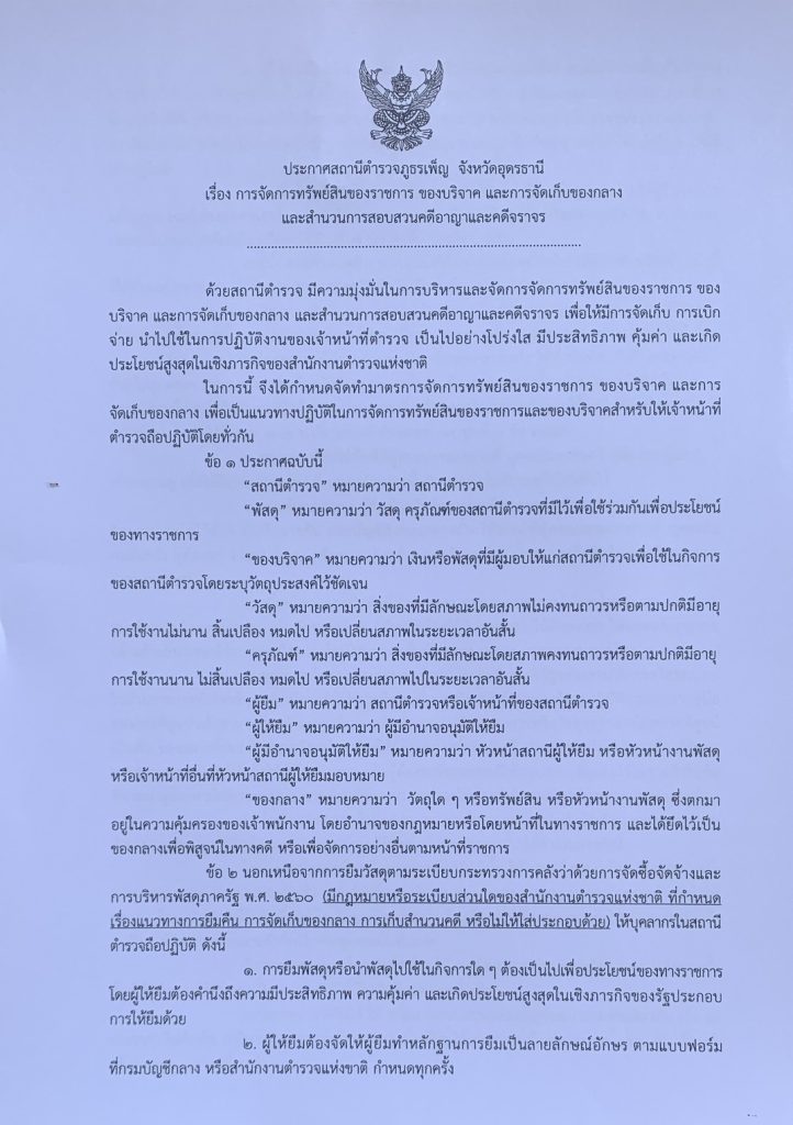 O23 การจัดการทรัพย์สินของทางราชการ ของบริจาค การจัดเก็บของกลางและการรายงานผล