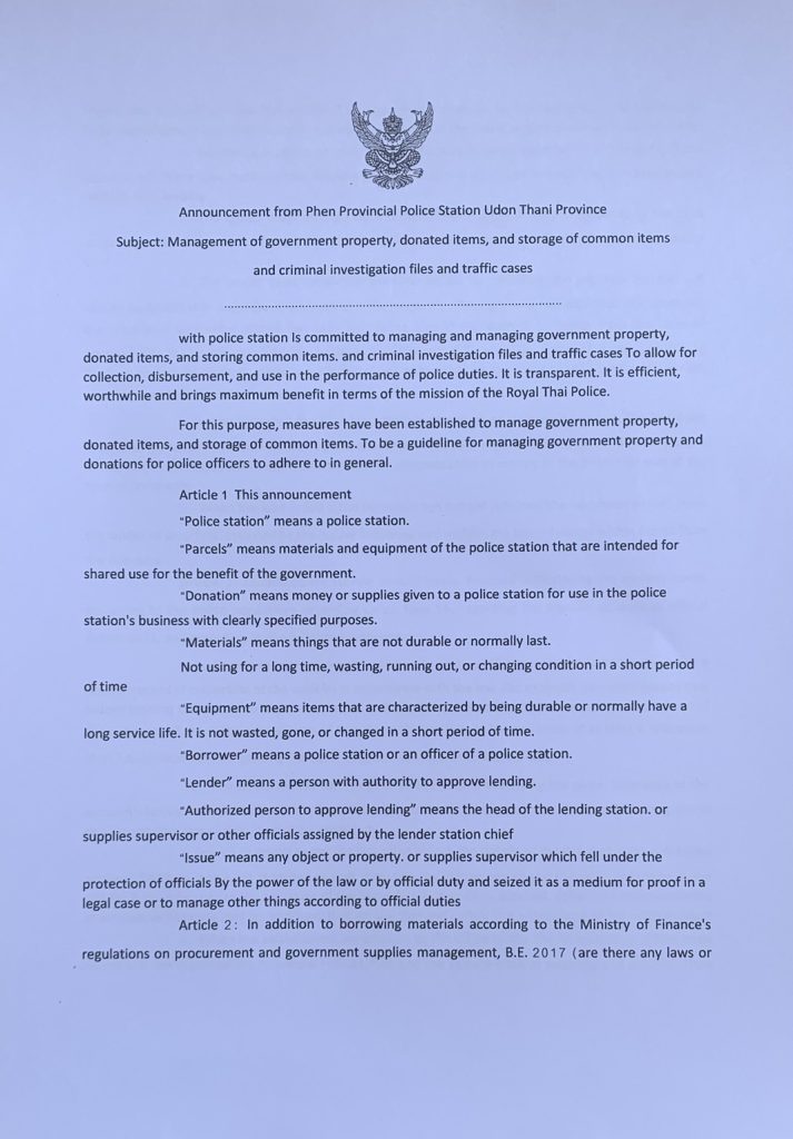 **ระเบียบข้อสั่งการที่เกี่ยวข้อง การจัดการทรัพย์สิน และสิ่งของบริจาคของทางราชการ