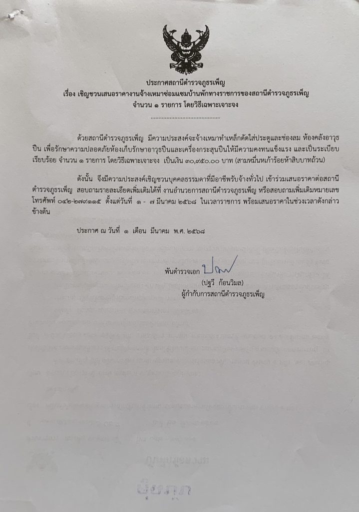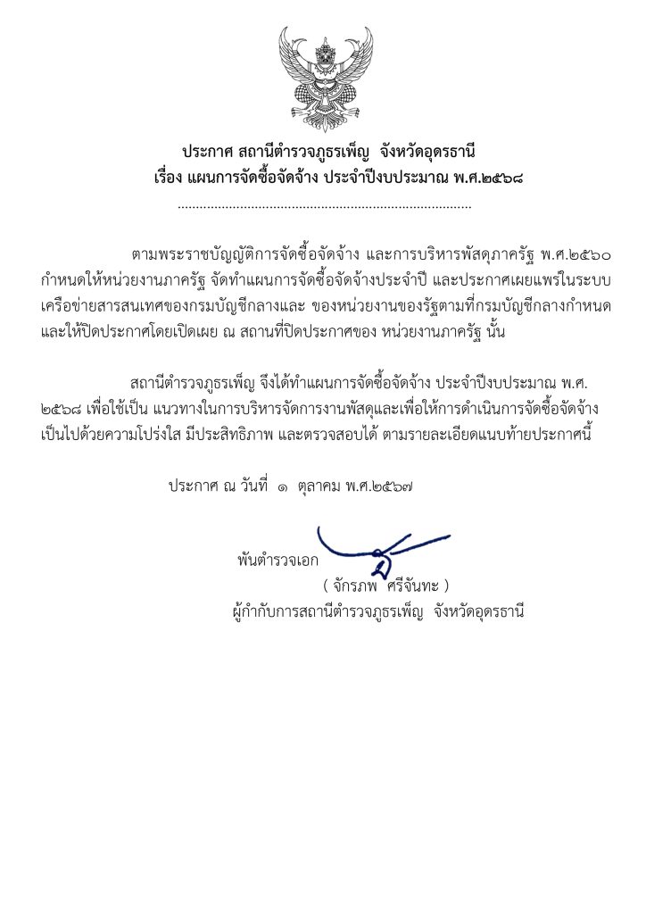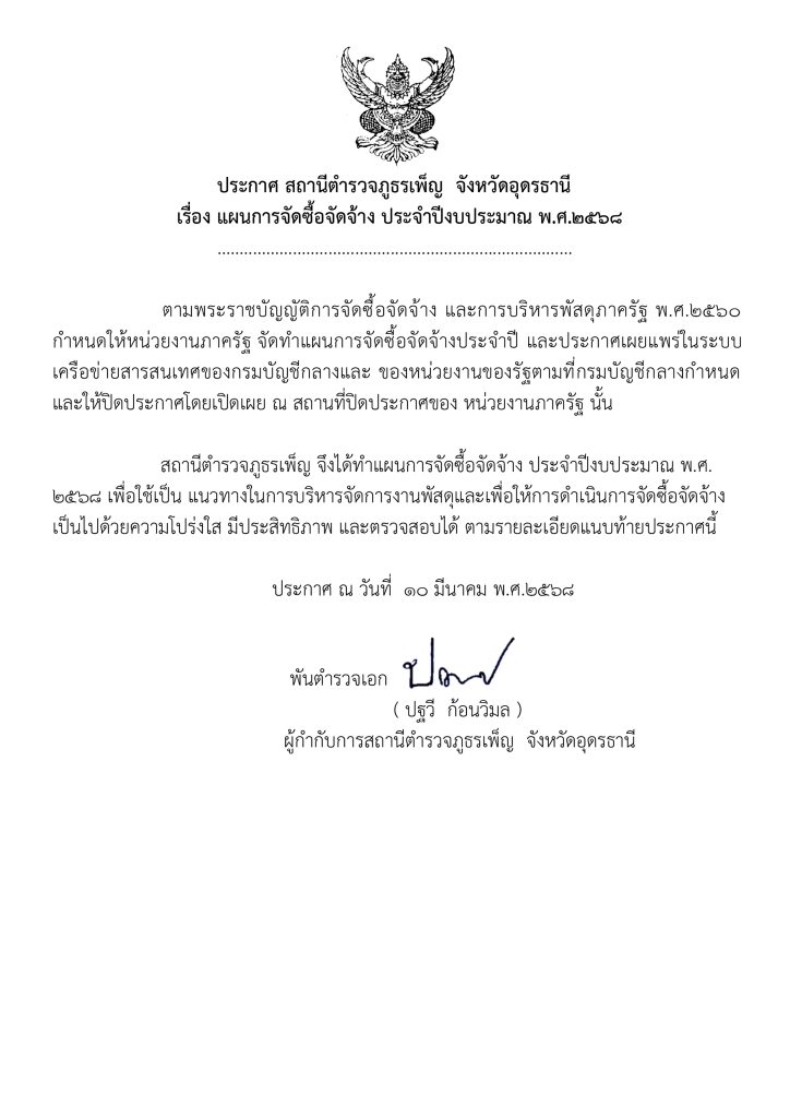 ประกาศแผนการจัดชื้อจัดจ้าง ของสถานีตำรวจภูธรเพ็ญ