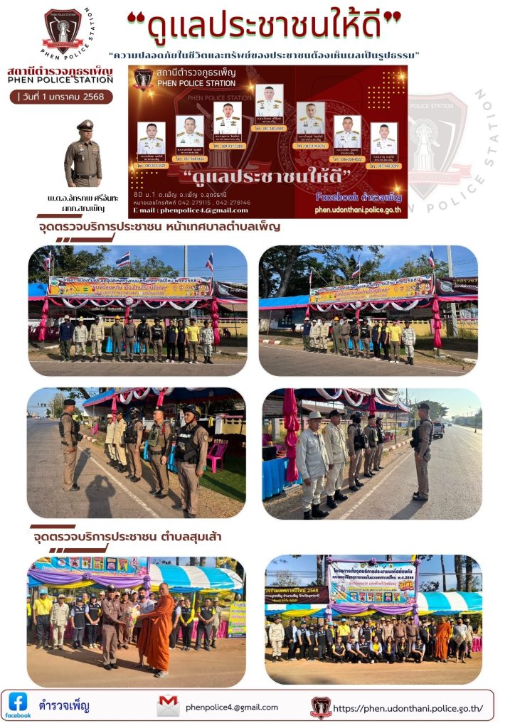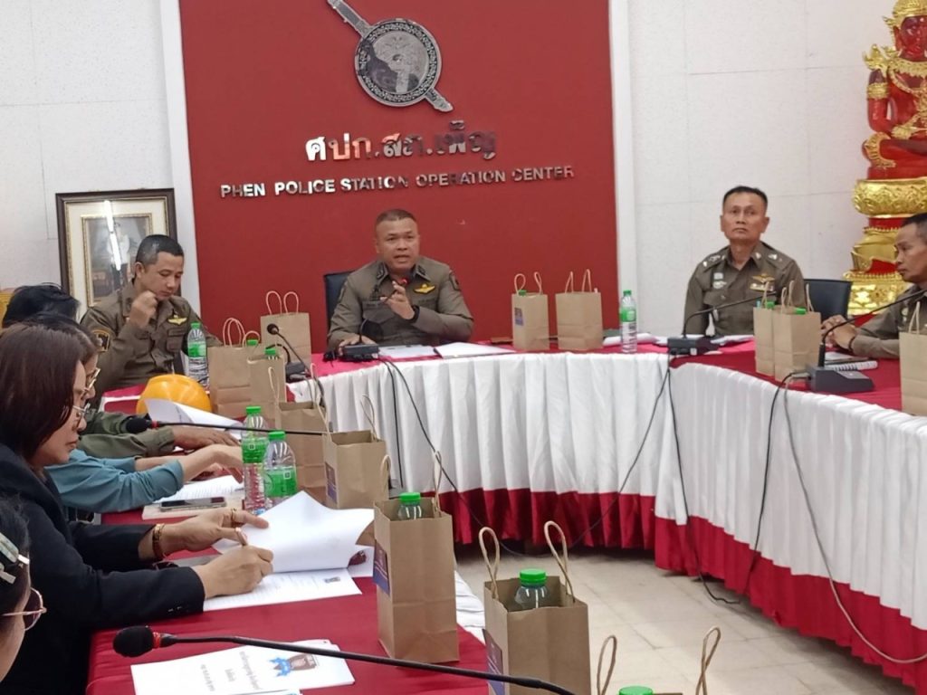 โดย พ.ต.อ.จักรภพ  ศรีจันทะ ผกก.สภ.เพ็ญ, พ.ต.ท.ไพฑูรย์ โสนะโชติ รอง ผกก.ป.ฯ,พ.ต.ท.เศกสันต์ ฤาเวทย์ รอง ผกก.สส.ฯ,พ.ต.ท.ชวลิต อุปพงษ์ สวป.ฯ,พ.ต.ต.ภัคพล พลภักดี สว.สส.ฯ,พร้อมข้าราชการตำรวจ สภ.เพ็ญ, อาสาสมัครตำรวจชุมชน,กู้ชีพ,อาสากู้ภัยอำเภอเพ็ญ