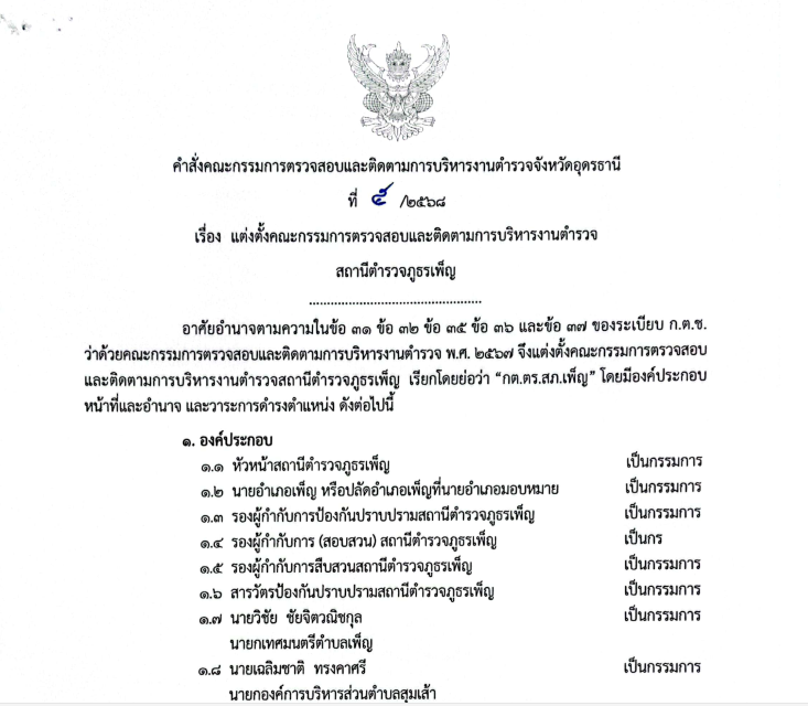 การประชุมคณะกรรมการตรวจสอบและติดตามการบริหารงานตำรวจ สถานีตำรวจภูรรเพ็ญ (กต.ตร.สภ.เพ็ญ) ครั้งที่ 1/2568 ประจำปีงบประมาณ พ.ศ.2568 ณ ห้องประชุม ศปก. ชั้น 3 สภ.เพ็ญ อำเภอเพ็ญ จังหวัดอุดรรานี