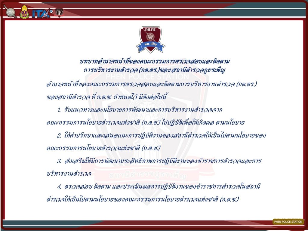 บทบาท อำนาจหน้าที่ ภาระกิจ ของคณะกรรมการตรวจสอบและติดตามการบริหารงานตำรวจ (กต.ตร.) ของสถานีตำรวจ